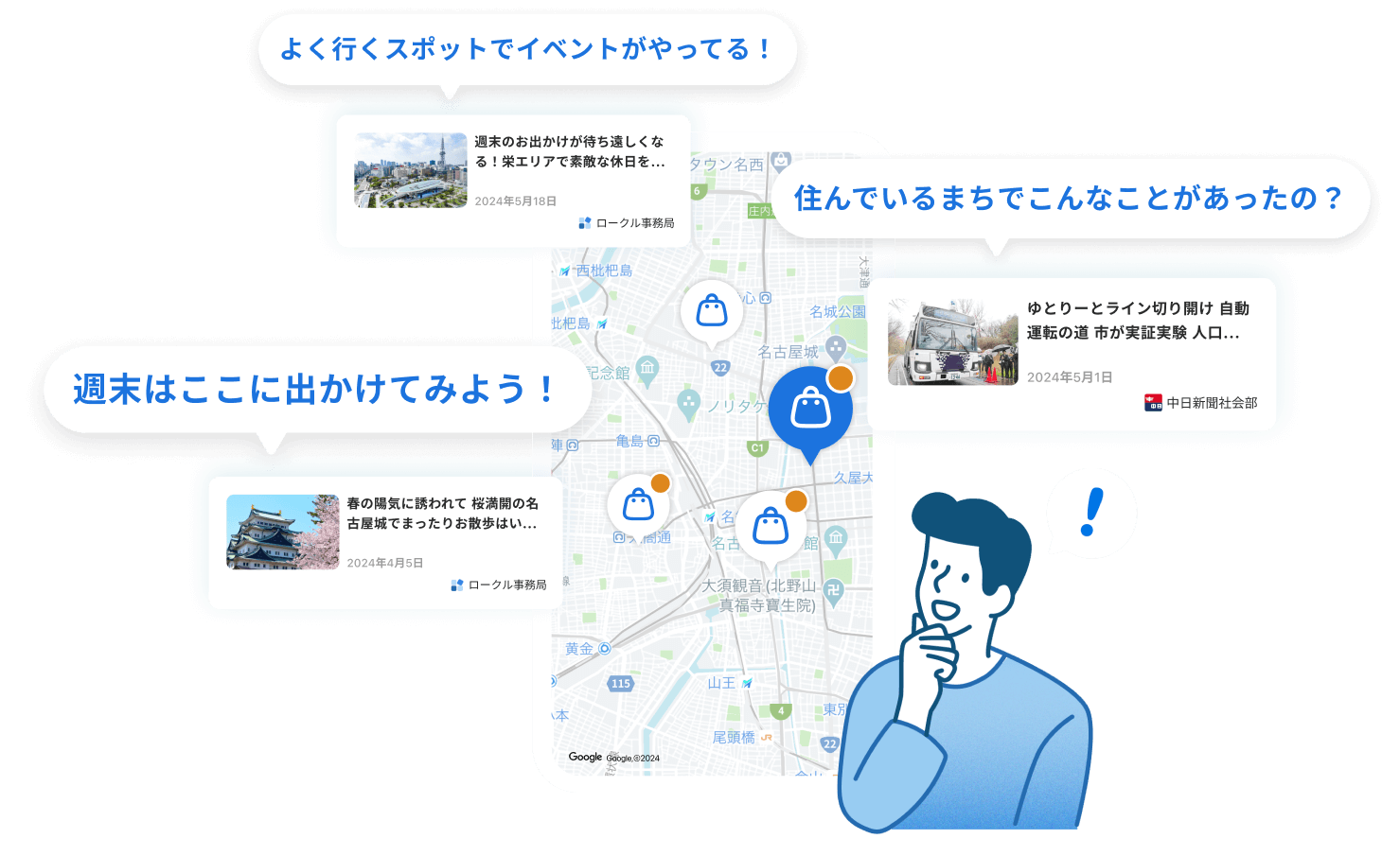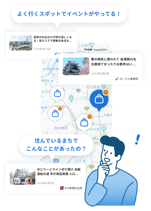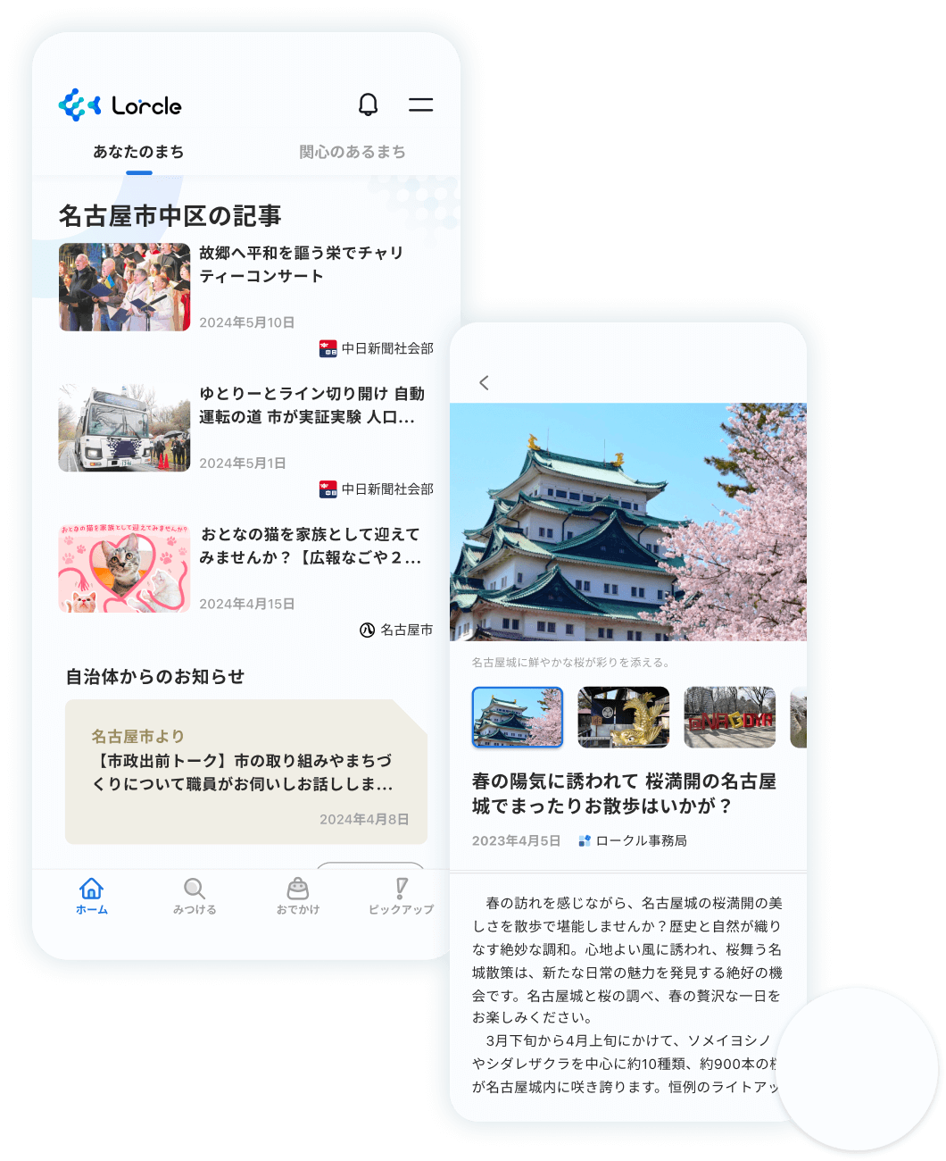 あなたの住んでいるまち、関わりのあるまちについての出来事や大切なお知らせを一覧で見ることができます。